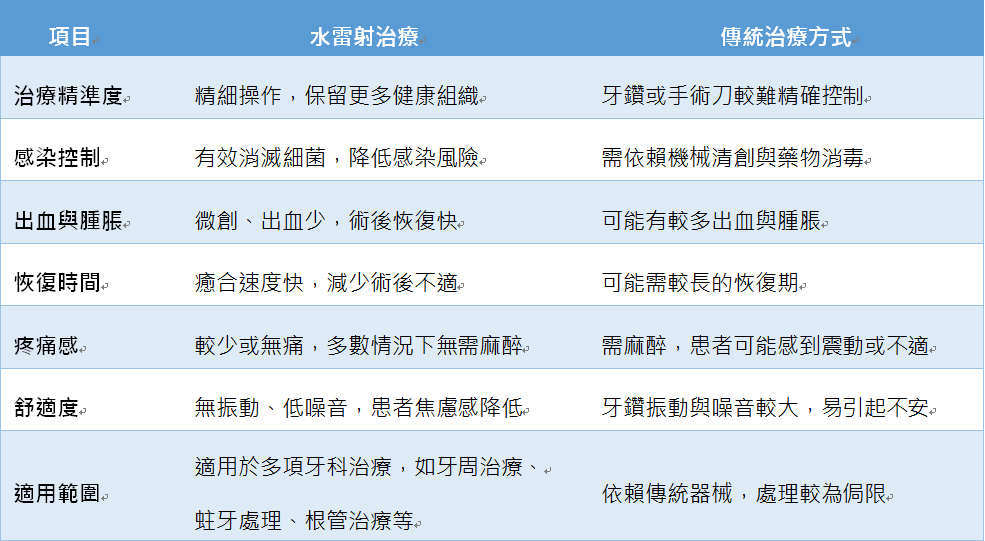 隨著醫療技術的進步,「水雷射」以其獨特原理,為醫師與患者帶來更舒適、微創且高效的治療選擇。相較傳統方式,水雷射不僅降低不適、縮短恢復期,更提升治療精準度,為牙科臨床帶來革命性突破。